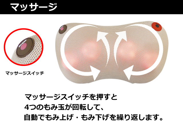 | ■本体定格 | 温熱機能:DC12V、3W マッサージ機能:DC12V、30W |